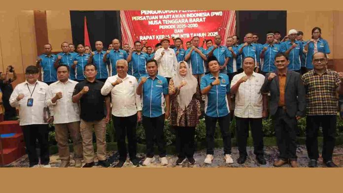 (PorosLombok.com) – Pengurus Persatuan Wartawan Indonesia (PWI) Provinsi Nusa Tenggara Barat (NTB) masa bakti 2025-2030 resmi dilantik oleh Ketua Umum PWI Pusat, Ahmad Munir, di Hotel Lombok Raya, Mataram, Jumat (19/12/2025).