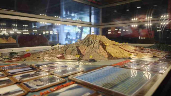Pameran tidak hanya menyajikan artefak keseharian, tetapi juga kisah besar yang berdampak global. Salah satu sorotan adalah miniatur tiga dimensi letusan Gunung Samalas yang pada abad ke-13 menebarkan abu vulkanik hingga menutupi hampir separuh dunia.