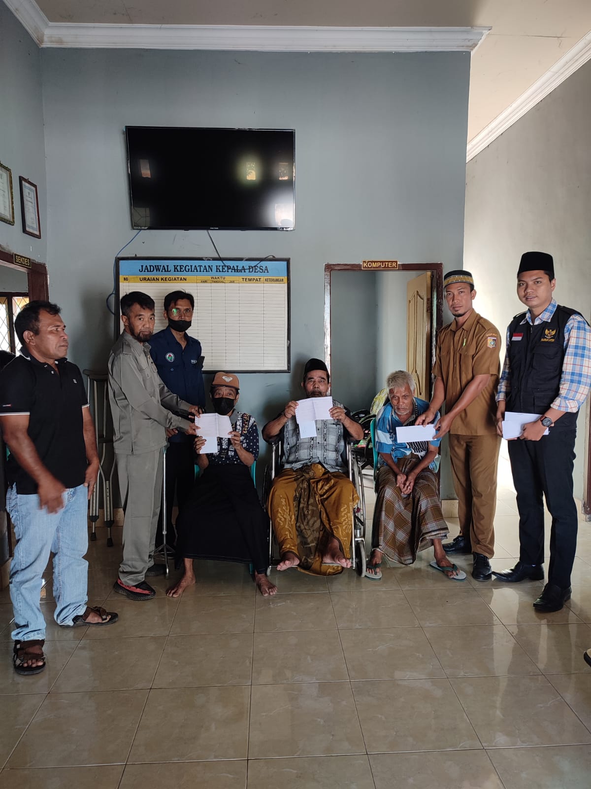 Pemberian santunan itu diserahkan langsung oleh KUPZ Kecamatan Sukamulia, Faizun Fikry, S.IP, kepada masing-masing penerima, di Kantor Desa Jantuk.
