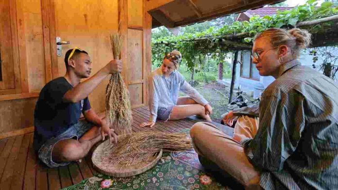 Wisatawan diajak menyaksikan langsung bagaimana sistem pertanian alami dilakukan warga.