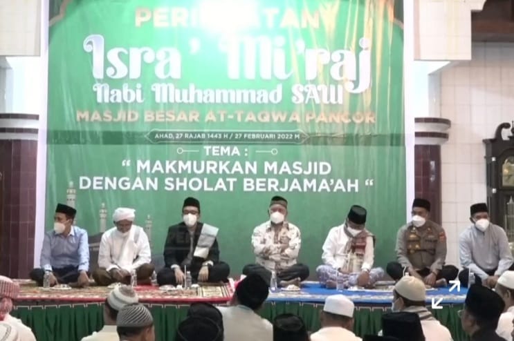 Bupati Lombok Timur,HM.Sukiman Azmy bersama dengan Wakil Bupati Lotim,H.Rumaksi SJ menghadiri kegiatan peringatan isrok Mikraj Nabi Muhammad SAW di Masjid At-Takwa Pancor,Minggu Malam (27|2).